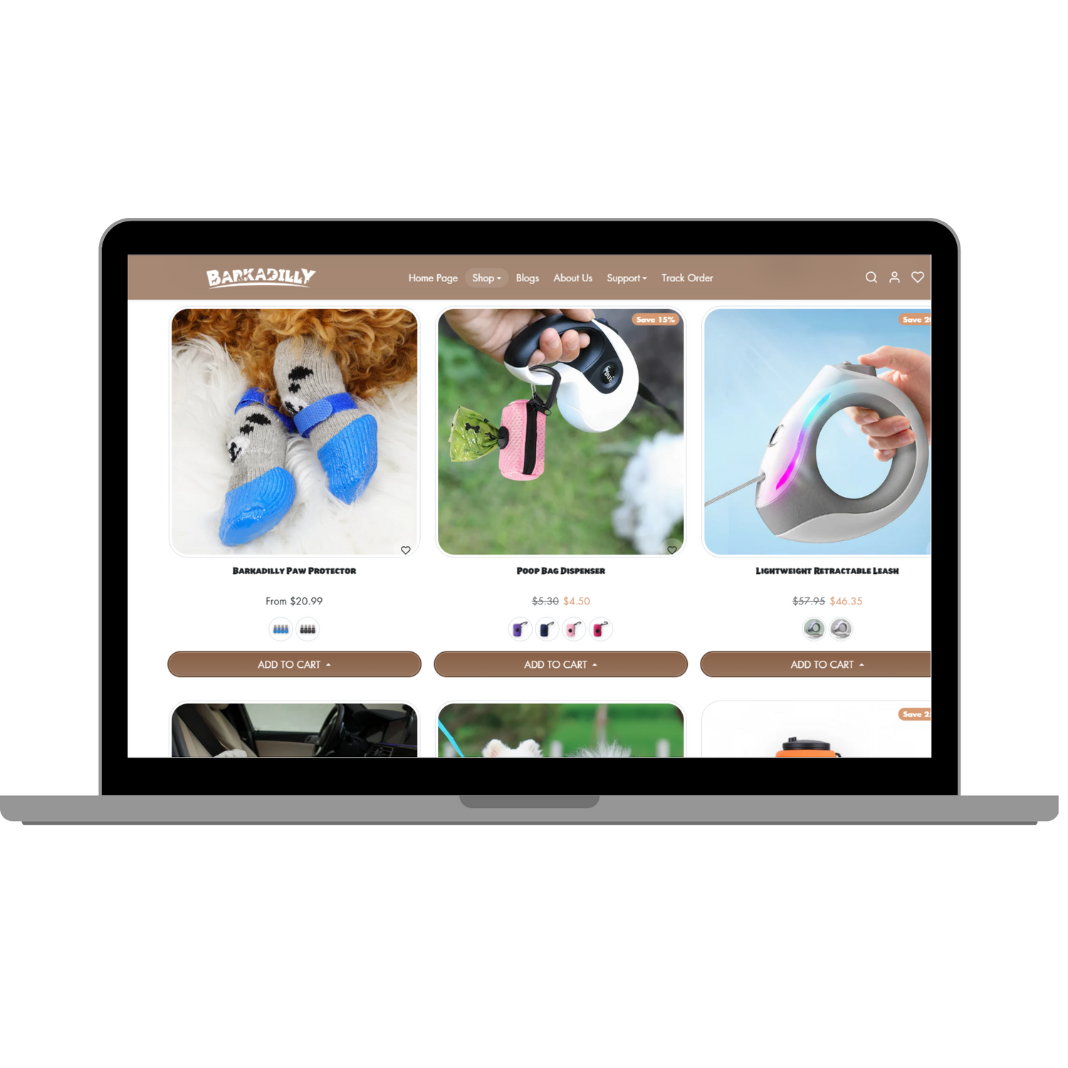 For Barkadilly, we engaged in product hunting from China, carefully selecting high-quality products that align with their brand and target audience. These products were then listed in the store, ensuring they were easily accessible to customers and integrated seamlessly into the overall store design.