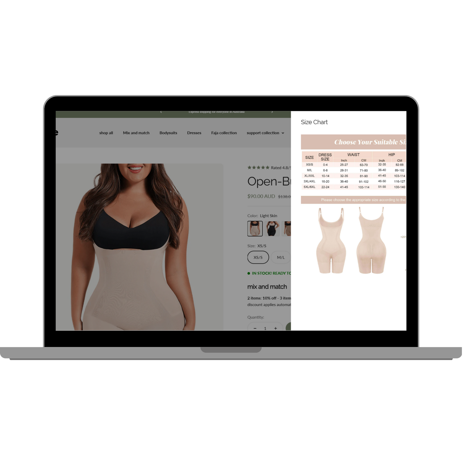 For GetShape, we integrated a detailed size chart on the product page. This size chart helped customers easily find the right fit by providing clear measurements and guidelines, enhancing their shopping experience and reducing returns.