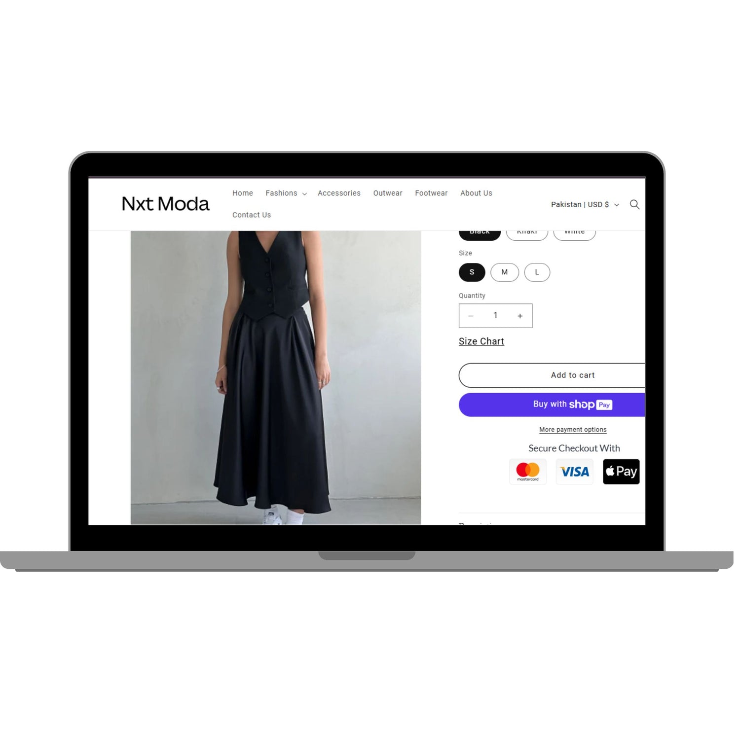 At Nxt Moda, we provided a range of services including integrating a size chart to improve the customer shopping experience, redesigning the store for a more user-friendly interface, and enhancing product descriptions and reviews to build trust and boost sales.